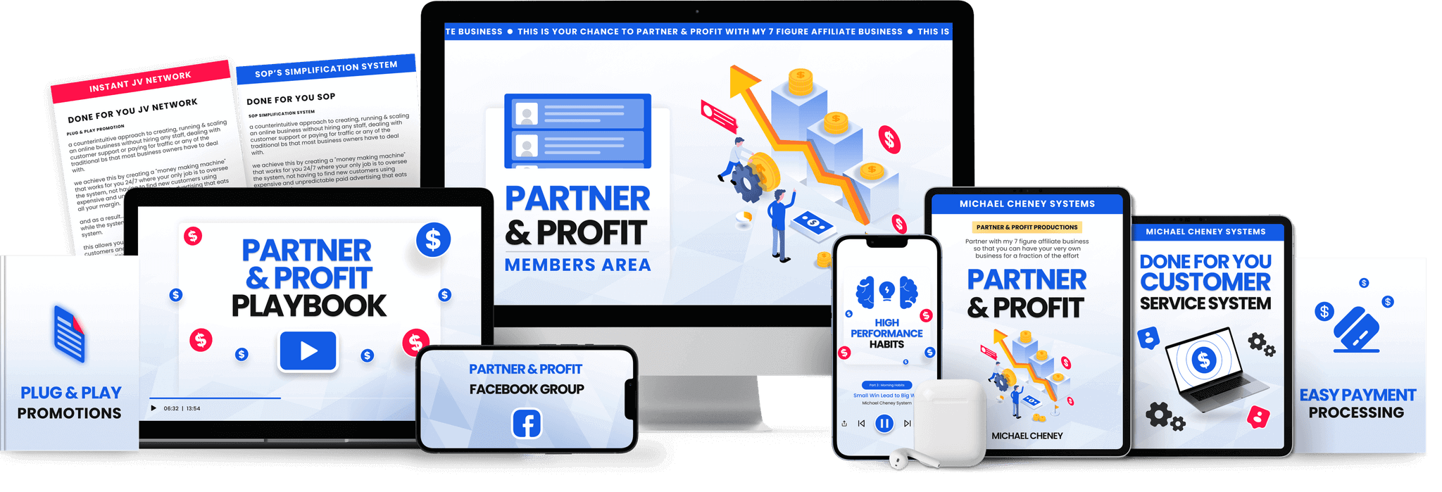 A complete step-by-step roadmap of how to run your very own Partner & Profit business. All of the steps are figured out so you don't have to know anything about the business to be able to successfully run the business